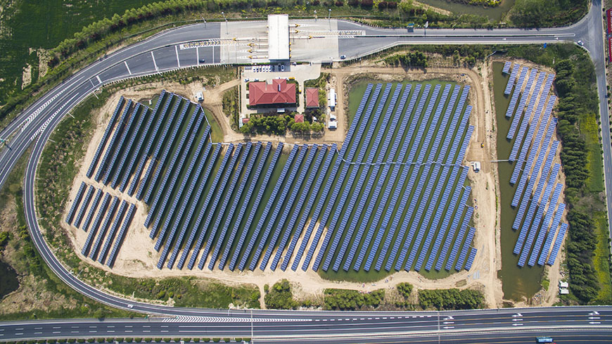 本項目由江蘇交通控股集團(tuán)江蘇云杉清潔能源投資控股有限公司投資建設(shè),采用10kV電壓等級全額就近T接并網(wǎng)的方式。項目利用沈海高速鹽城段,蔡橋和興橋互通區(qū)域閑置的土地建設(shè)分布式光伏發(fā)電項目,并完美的把光伏電站的規(guī)劃建設(shè)與互通區(qū)域的自然景觀環(huán)境相結(jié)合,使光伏清潔能源發(fā)電、交通運輸、節(jié)能減排、安全行駛、互通綠化養(yǎng)護(hù)高效整合在一起,將其打造成了一個“綠色高速、智慧高速、新能源高速”的示范工程。
