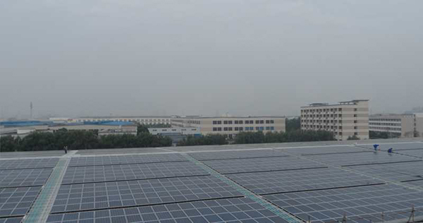 本工程由浙江優(yōu)太新能源有限公司投資建設(shè)在浙江嘉興經(jīng)濟(jì)開發(fā)區(qū)內(nèi)工業(yè)園區(qū)屋頂上,采用標(biāo)準(zhǔn)功率為245Wp的晶硅組件,砼結(jié)構(gòu)屋頂采用鍍鋅支架,組件與水平面呈15°傾角安裝,彩鋼屋頂采用鋁合金支架,沿屋面平鋪,光伏組件通過壓塊固定在支架上。光伏發(fā)電系統(tǒng)采用分片發(fā)電、就近并網(wǎng)的技術(shù)方案,交流輸出端接至企業(yè)配電柜,按就近原則給負(fù)載供電。