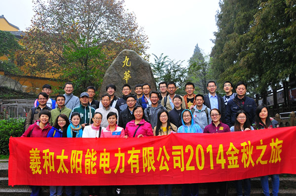 金秋時節(jié),涼風(fēng)送爽,為豐富員工的文化生活,讓員工在繁忙的工作中愉悅身心,回歸自然,增進(jìn)相互間友誼,促進(jìn)團(tuán)結(jié)協(xié)作,同時也為了體現(xiàn)企業(yè)的人文關(guān)懷,11月1日至2日公司組織全體員工開展了“羲和太陽能電力2014年金秋之旅活動”。此次活動的行程是:九華山-牯牛降。佛教文化與秀麗山水在這里完美融合,移步換景,每一處皆是佛化的自然勝景,每一處景色仿佛都有著佛教圣地的圣潔與光輝,令人流連忘返。