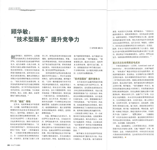 “技術(shù)型服務(wù) 提升競(jìng)爭(zhēng)力”--顧華敏總經(jīng)理接受光伏產(chǎn)業(yè)雜志專(zhuān)訪
