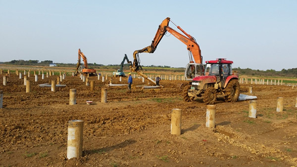 該項(xiàng)目為魚塘水面電站,淤泥較深,現(xiàn)場(chǎng)施工采取“邊試樁、邊打樁”方式確定管樁樁長(zhǎng),是我司漁光互補(bǔ)光伏施工的再次探索和深入。