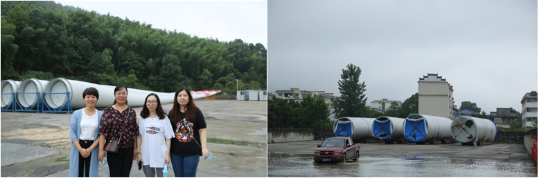 慰問(wèn)團(tuán)隊(duì)于下午18點(diǎn)到達(dá)修水縣城,由于距項(xiàng)目部還有30多公里的山路,因此接受項(xiàng)目部建議,決定第二天上山,當(dāng)晚與項(xiàng)目團(tuán)隊(duì)在修水縣城聚餐并與每位員工親切溝通。25日清晨,細(xì)雨蒙蒙,慰問(wèn)團(tuán)隊(duì)首先趕到項(xiàng)目臨時(shí)堆場(chǎng),第一次近距離看到風(fēng)機(jī)葉片、塔筒等大型設(shè)備,大家非常興奮,但欣喜之余也不禁感嘆在這樣的雨季山路運(yùn)輸?shù)钠D難和施工任務(wù)的艱巨。