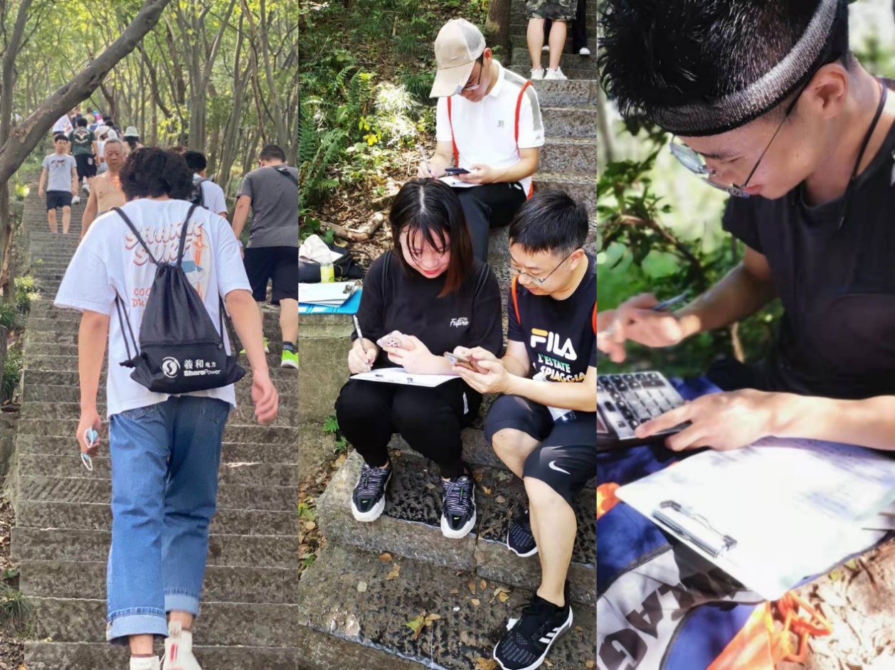 誰先到?當然是我們的工作人員先到,9月11日清晨,工作組小伙伴率先抵達紫金山腳,迅速布置活動地點,為本次永攀高峰的團建活動掃清障礙。