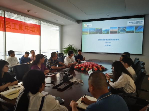 接下來,工程總監(jiān)冷總在工程項目管理的流程以及項目各個階段進行了細致的講解?!靶枪獠粏栚s路人,歲月不負有心人”,每一個成功案例的背后都有著項目經(jīng)理們嘔心瀝血的付出。隨后商務(wù)部黃總從新能源項目市場開發(fā)和商務(wù)工作兩個模塊向我們介紹了商務(wù)拓展的各項業(yè)務(wù)。